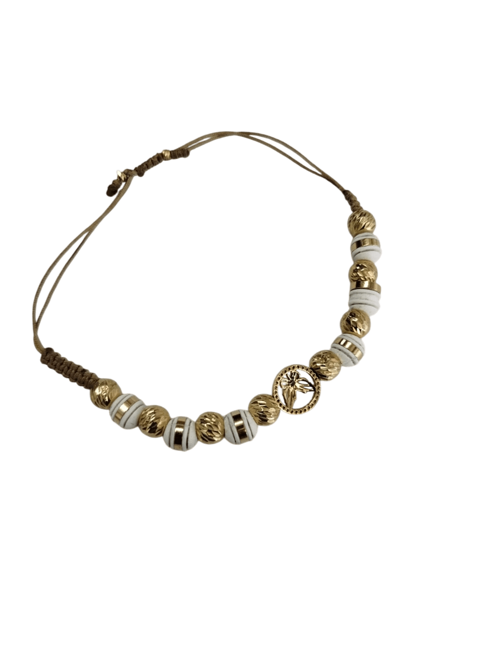 Su cordón trenzado ajustable brinda comodidad y adaptabilidad, permitiendo un ajuste perfecto a cualquier tamaño de muñeca. El diseño incluye un detalle central elegante, que realza el acabado del oro italiano 18 quilates (ley 750), símbolo de pureza y calidad superior.