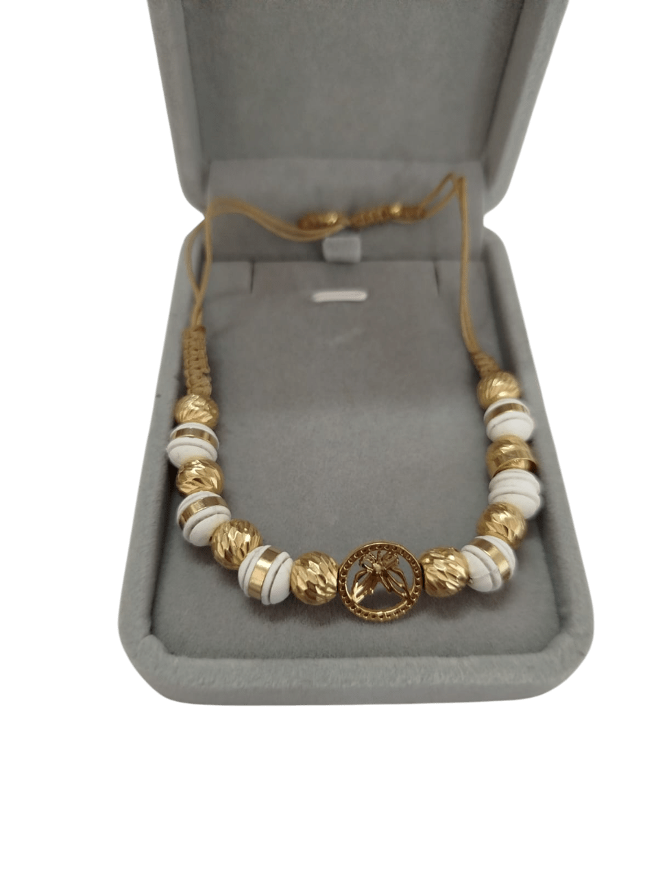 Elegancia y distinción en una sola pieza. Elaborada en oro italiano 750, con diseño trenzado ajustable y cuentas talladas que reflejan un brillo excepcional. Ideal para lucir o regalar con estilo.